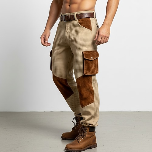 Per uomo Nido d'ape Pantaloni Cargo Pantaloni Pantaloni casual Patchwork Tasca Elastico in vita Semplice Comodità Morbido Lunghezza intera Casuale Quotidiano All'aperto Moda Streetwear Nero Verde