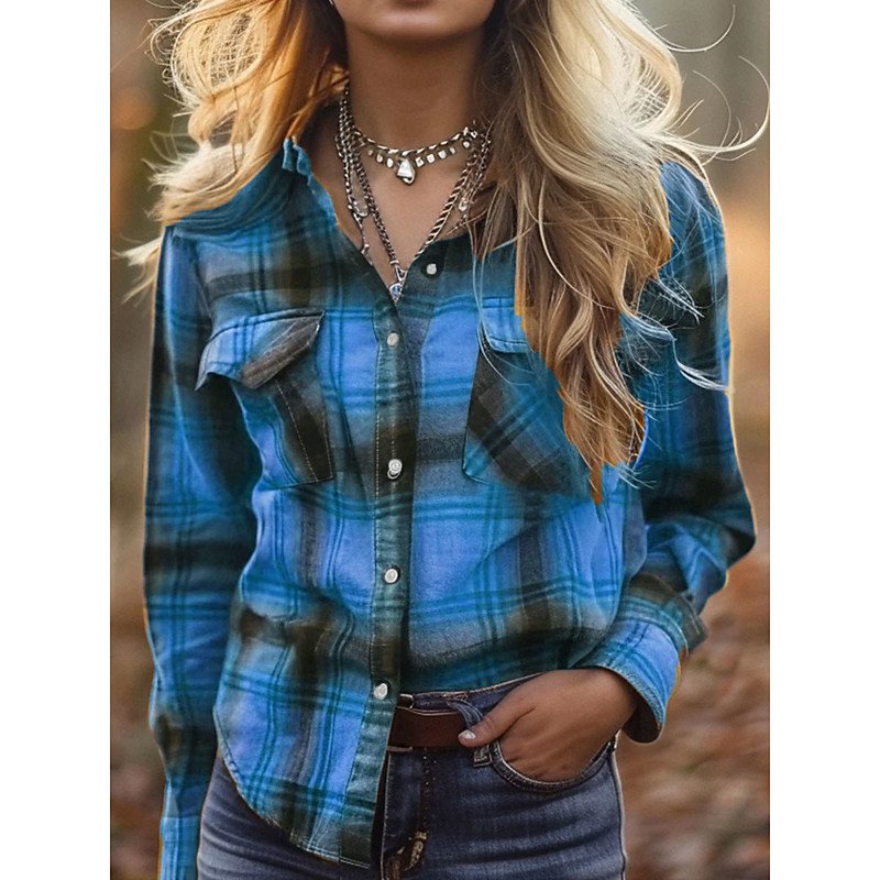 Per donna Camicia Blusa Plaid Moderno Casual Manica Lunga Colletto a Camicia Top Regolari Quotidiano Ferie Bottoni Nero Rosso Marrone Verde Autunno