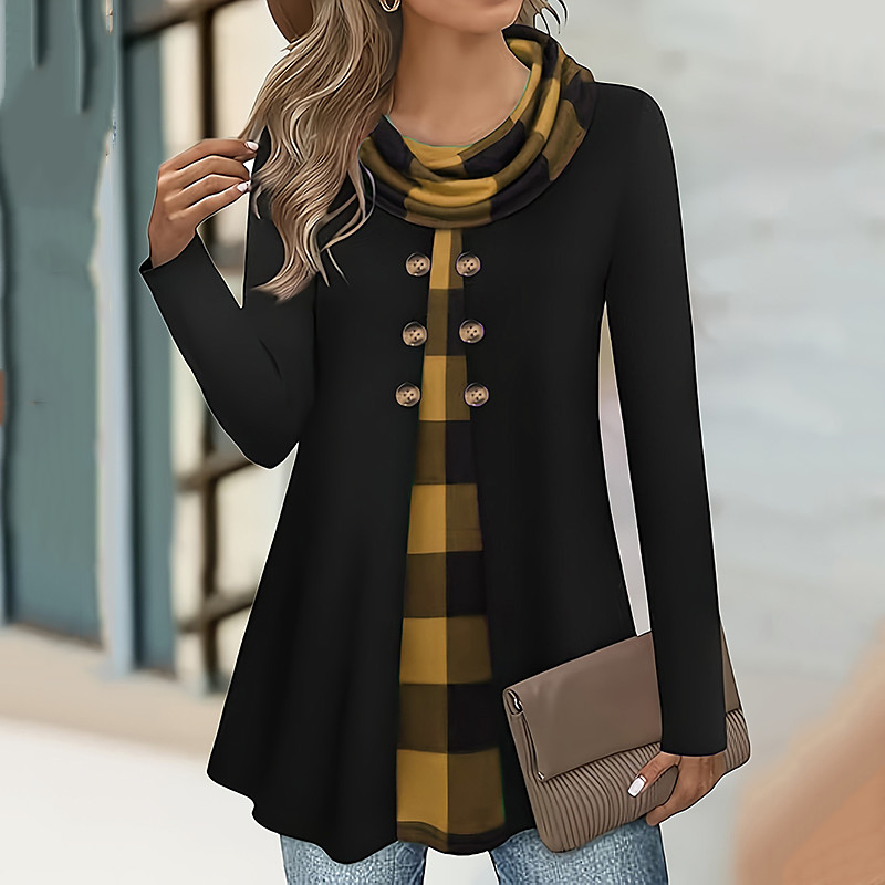 Women's Blouse Plaid Elegant Daily Stylish Long Sleeve High Neck Long Tops Daily Holiday Going out Buttons White Red Blue Green Khaki Spring Fall