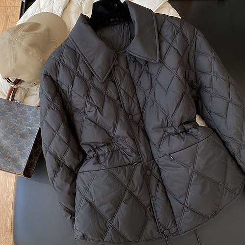 Per donna Cappotto Invernale Giacca trapuntata Parka Caldo Confortevole Bottoni Moda Casual Plaid Vacanza Casuale Abbigliamento quotidiano Uscire Regolare Collo ripiegato Vestibilità regolare Manica