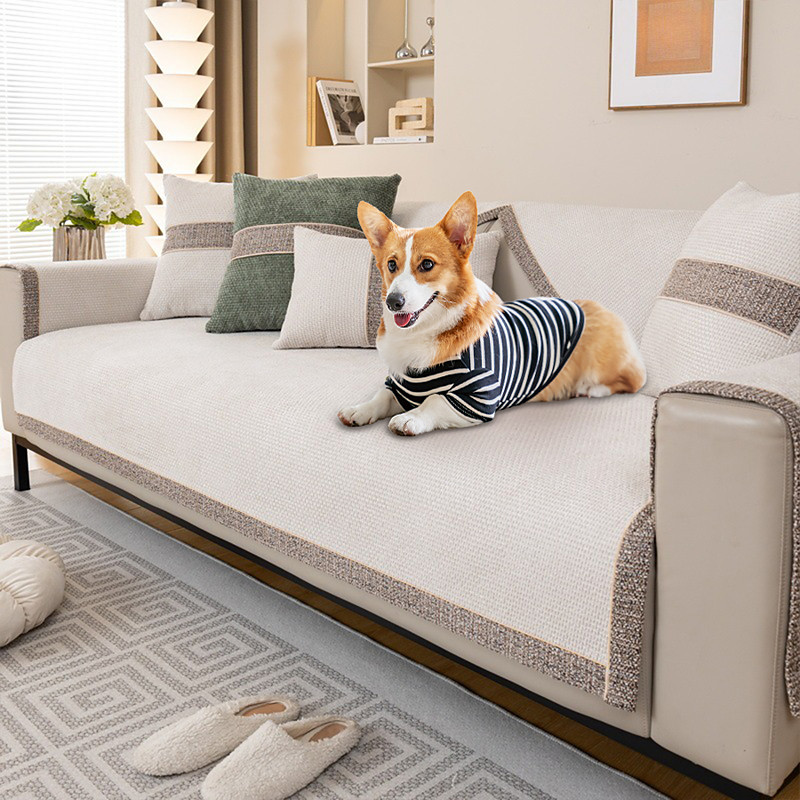 All-Season Sofa Cover For Dog Modern Tweed Woven Chenille Anti-Slip Couch Cover Pet Friendly