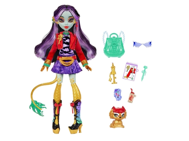 Monster High Jinafire Long Fashion Doll with Pet Dog Cloudy “Yun Yun” and 7 Accessories