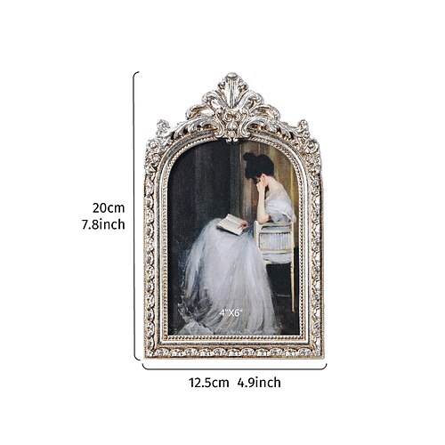 Dekorativer Vintage-Fotorahmen mit Bogenspitze in Gold/Silber, antike Tischdekoration im europäischen Stil, perfekt für die Fotopräsentation, Heimdekoration und als Foto-Requisite