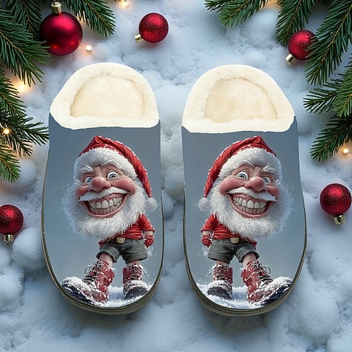 Hausschuhe für Herren mit Weihnachtsmann-Motiv – festliches rotes Weihnachtsmann-Gesicht mit LED-Lichtern, kuschelige Plüschpantoffeln für den Weihnachtsmorgen, zum Entspannen und für die Feiertage