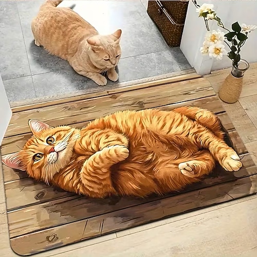 Fußmatte mit roter Katze auf Holzplanken-Motiv, ideal für Katzenliebhaber, verleiht Ihrem Eingangsbereich eine gemütliche Note und ist leicht zu reinigen.