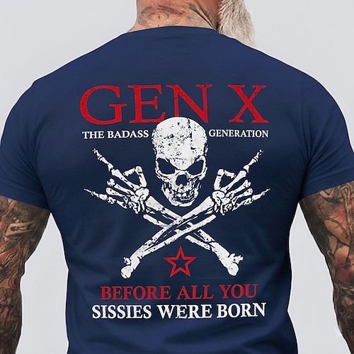Herren Gen X – die coole Generation, bevor ihr alle Weicheier geboren wurdet – Totenkopf, gekreuzte Skeletthände, roter Stern, Vintage-Look, Used-Look, T-Shirt mit Grafikprint, Rundhalsausschnitt,