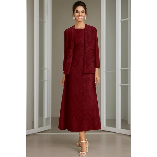 Due Pezzi Set di Abiti Lunghezza al ginocchio Abito da invitata a nozze Abito da cerimonia per signora Manica 3/4 Scollo a Cuore Elegante Semplice Formale Ospite di nozze Serata Formale con Tinta
