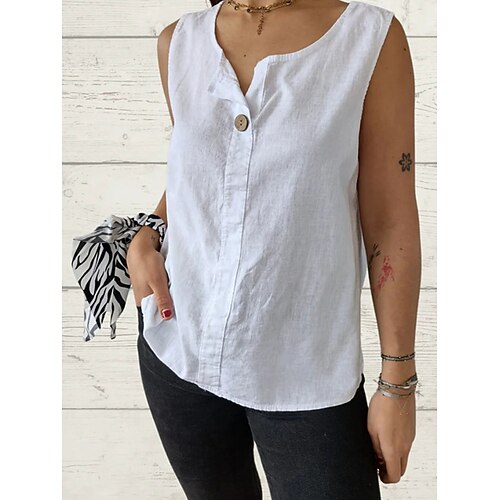 Per donna Top estivi Blusa Arricciato Patchwork Bottoni Tinta unica Semplice Elegante Vintage Signore Senza Maniche Girocollo Top Regolari Quotidiano Lavoro Ferie Nero Bianco Rosso Blu Reale Verde