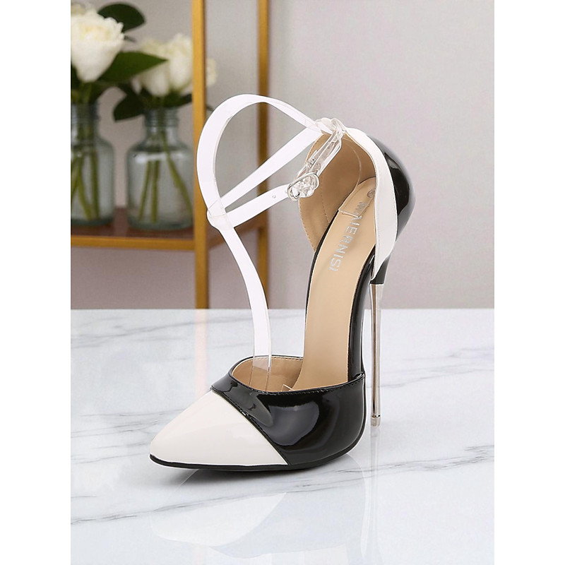 Women's White Ultra High Heel Pointed-Toe Ankle Strap Pumps, Sexy Stiletto Style Shoes for Nightlife Parties Pole Dance