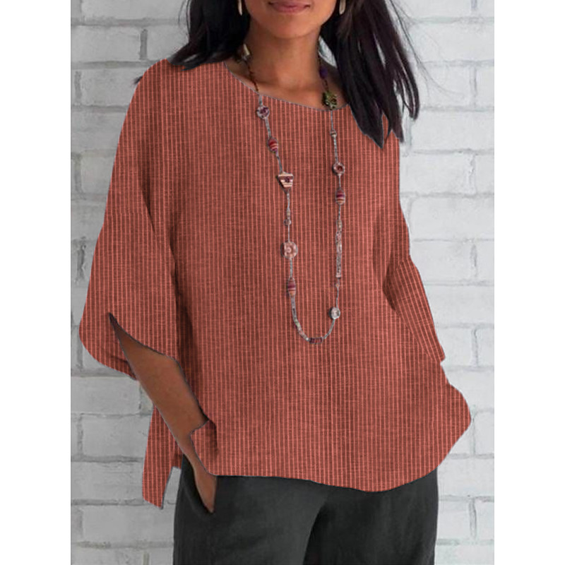 Women's Linen-Inspired Shirts Summer Tops Blouse Daily Casual 3/4 Length Sleeve Crew Neck Regular Tops Black Sky Blue Orange Apricot Summer Spring Fall