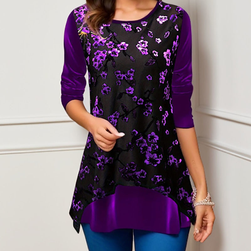 Women's Blouse Sequin Tops Floral Graphic Vintage Stylish Long Sleeve Crew Neck Regular Tops Daily Holiday Going out Sequins Print Yellow Red Purple Fall Winter