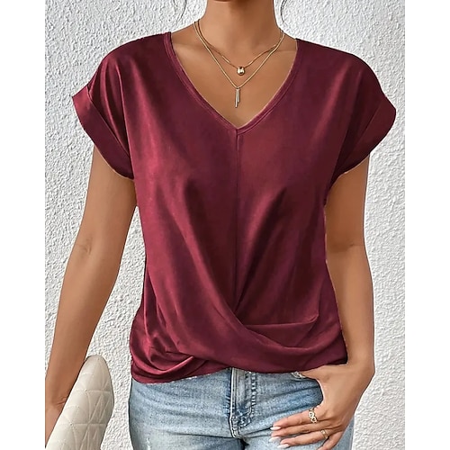 Per donna Maglietta Tinta unica Classico Casual Manica Corta Scollo a V Top Regolari Quotidiano Uscire Weekend Nero Bianco Rosa Vino Blu marino Estate Primavera