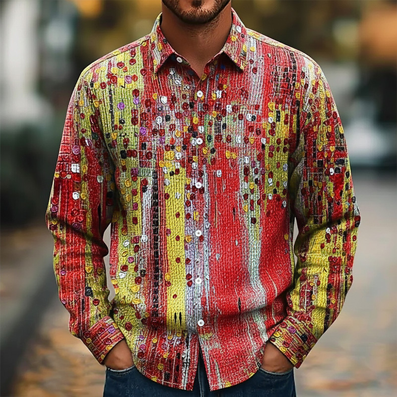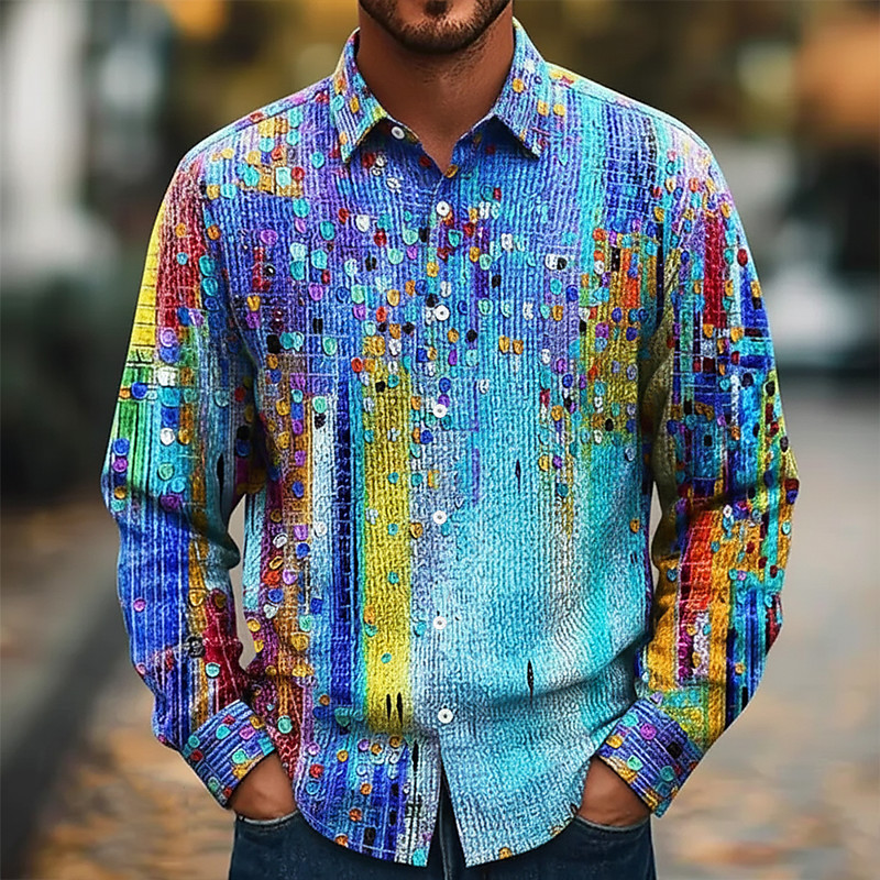 Men's Colorful Round Dots Abstract Art Shirt Button Up Shirt Long Sleeve Fashion Casual Holiday Casual Daily Spring Fall Turndown 3D Print Collared Shirts Red Blue Orange Green