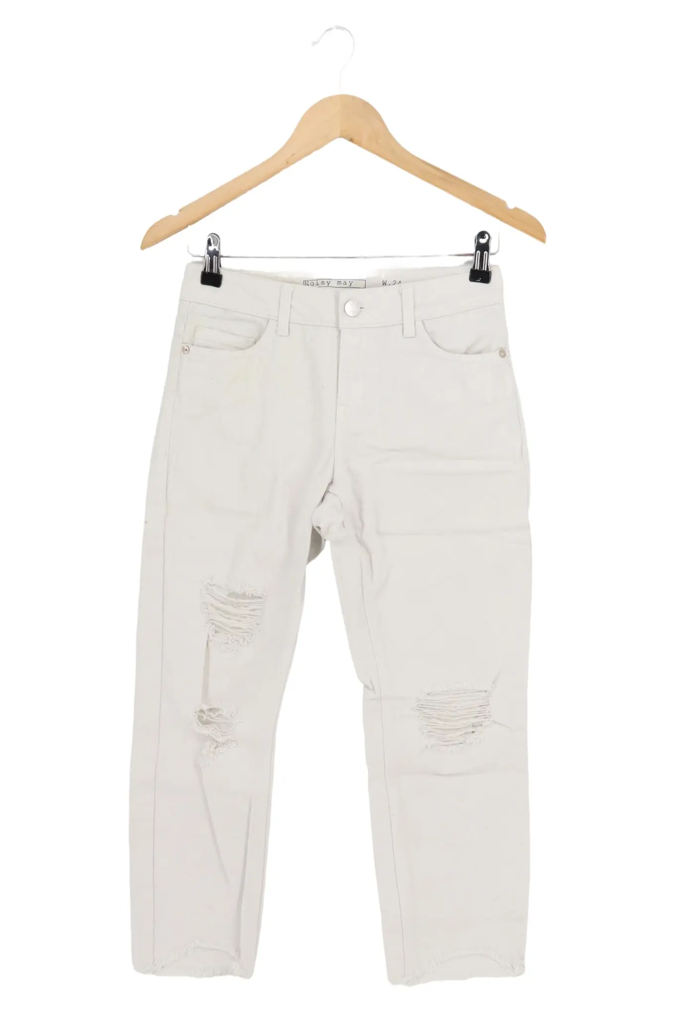 NOISY MAY Jeans Damen W24 Weiß Baumwolle Lang Casual