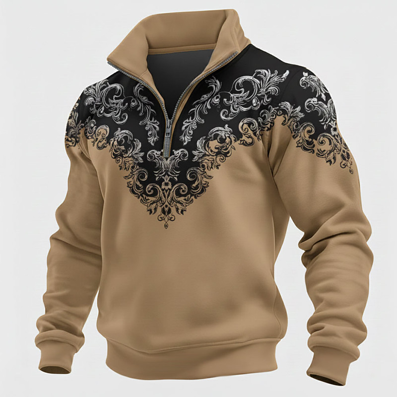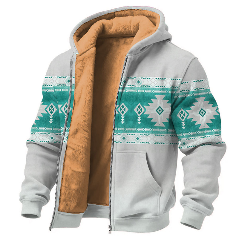 Men's Tribal Cowboy Sweatshirt Ethnic Vintage Retro Stand Collar Outdoor Work Gift Blue White Brown Green Zipper Fall Winter Designer S M L XL XXL XXXL