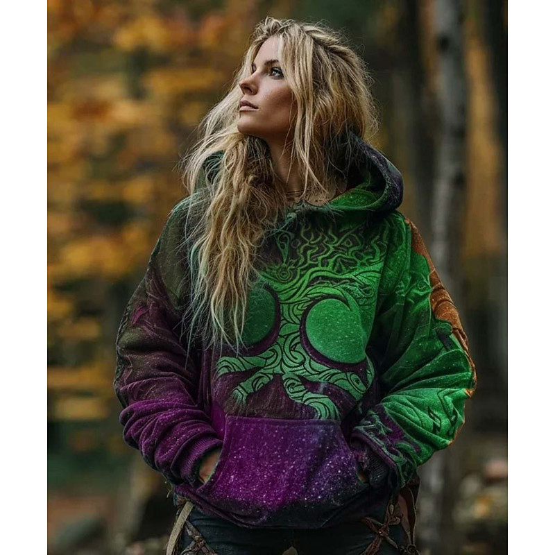 Women's Zip Up Hoodies Graphic Geometric Tribal Punk Active Vintage Long Sleeve Hooded Regular Tops Home Dailywear Casual Blue Purple Brown Green Fall Winter