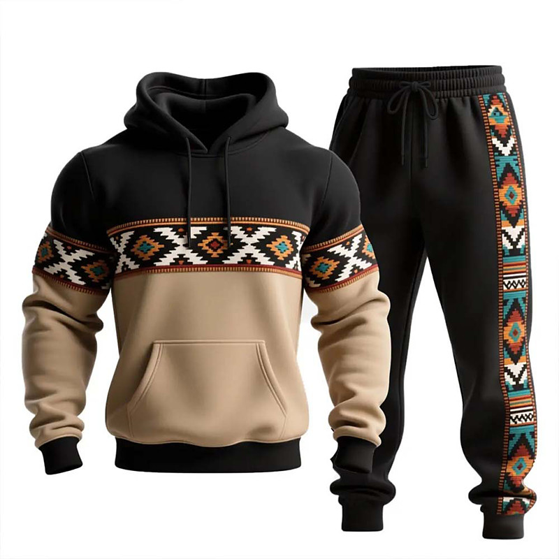 Men's Tribal 2pcs 3D Sweatshirt Sets Tracksuit Hoodie Sweatshirt Long Sleeve Long pants Hooded Ethnic Style Casual Daily Athleisure 3D Print Spring Fall Winter Brown