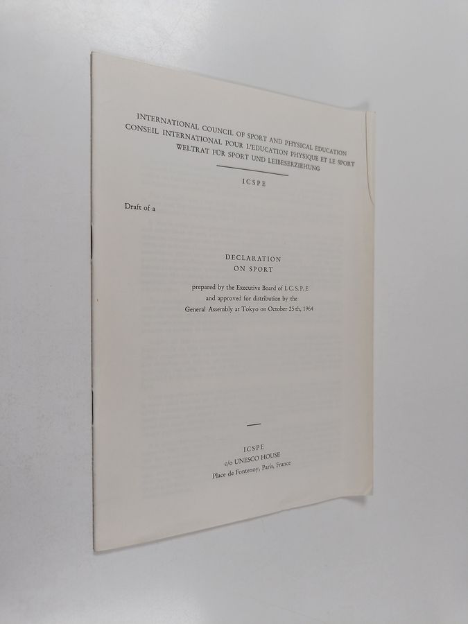 Draft of a Declaration on Sport prepared by the Executive Board of I.C.S.P.E. and approved for distribution by the General Assembly at Tokyo on ...