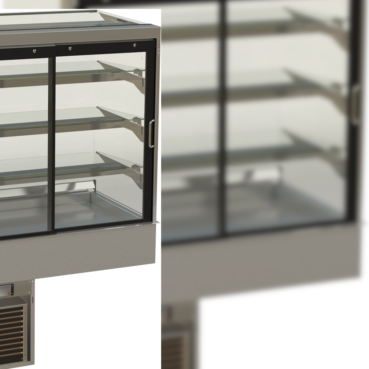 Showcase "Göteborg" eckig, für 2xGN1/1, 2 Auslagen 200mm Tiefe, 760x510/400+410x710mm (BxHxT) steckerfertig mit Transporthalterung