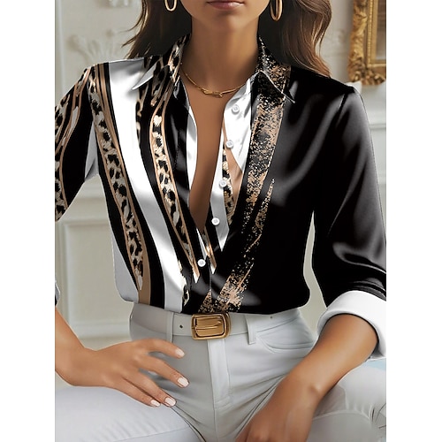 Per donna Camicia Grafico Geometrico Elegante Casual Manica Lunga Colletto a Camicia Top Regolari Lavoro Quotidiano Bianco Rosso Blu Viola Verde Primavera Autunno Inverno
