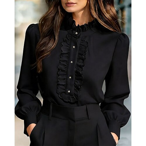 Per donna Blusa Top Eleganti Tinta unica Semplice Elegante Vintage Signore Manica Lunga Collo Alto Top Regolari Quotidiano Lavoro Ferie Arricciato Volant Patchwork Nero Bianco Rosa Autunno Inverno