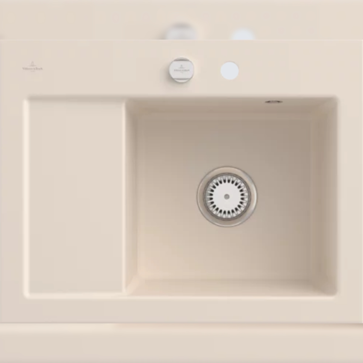 Villeroy und Boch Subway 45 Compact Einbauspüle 331302AM rechts, mit Ablaufgarnitur, Excenterbetätigung, 650 x 510 mm, almond CeramicPlus