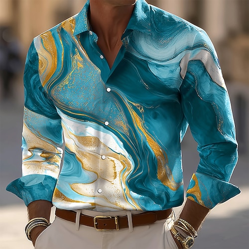 Per uomo Marmo Arte liquida astratta Camicia Camicia con Bottoni Camicia casual Manica Lunga Moda Casual Vacanza Quotidiano Abbigliamento casual alla moda Estate Primavera Collo ripiegato Stampa 3D