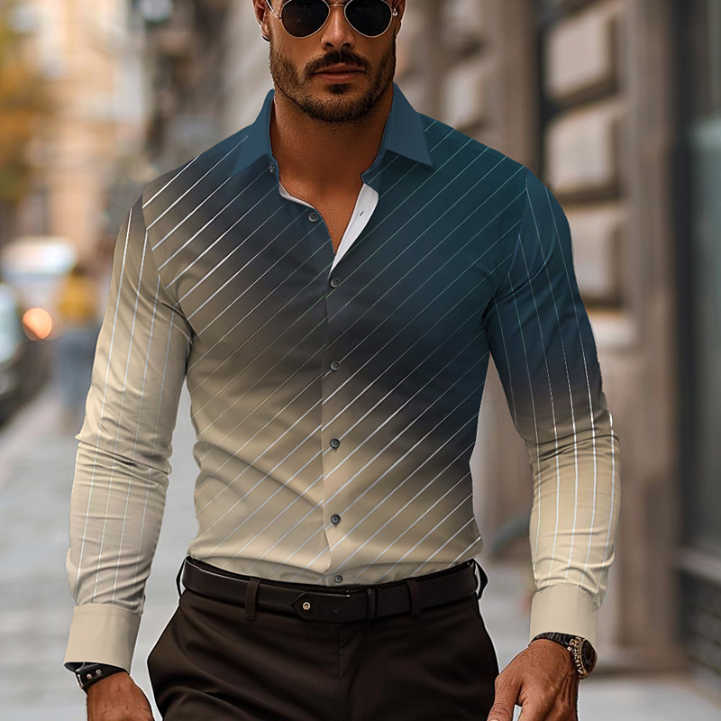 Men's Shirt Dress Shirt Button Up Shirt Geometric Vacation Daily Khaki Long Sleeve Turndown Spring Summer Clothing Apparel Button Up