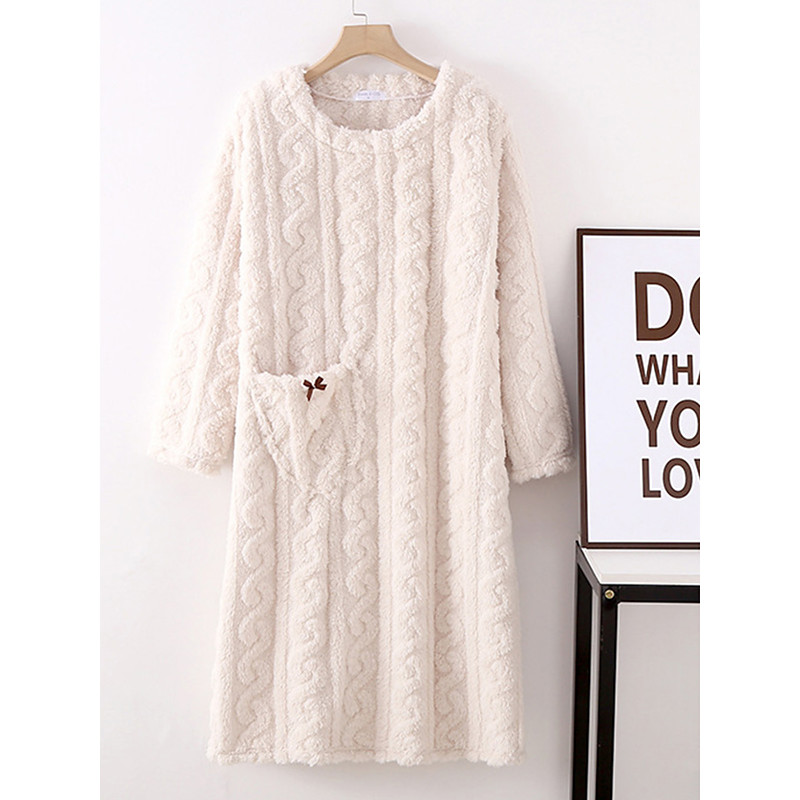 Women's Pajamas Nightgown Pure Color Simple Comfort Comfrt Home Fleece Crew Neck Spring Fall Home Outfits