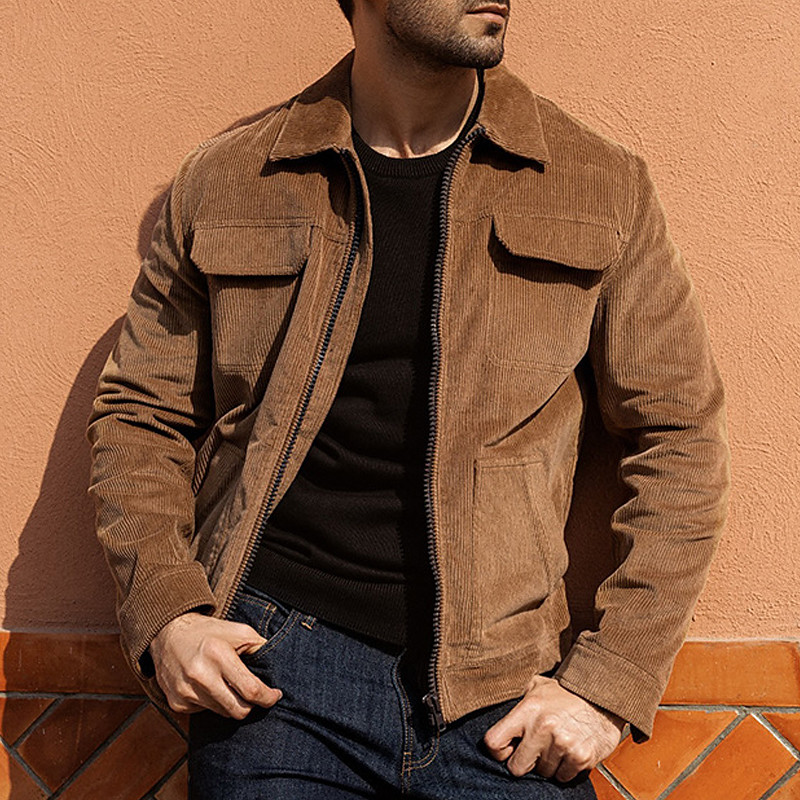Men's Lightweight Jacket Corduroy Jacket Casual Jacket Vacation Daily Warm Pocket Spring Fall Plain Fashion Classic Lapel Regular Khaki Jacket