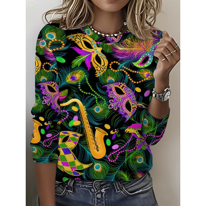 Carnival Women's T Shirt Graphic Vintage Fashion Stylish Long Sleeve Crew Neck Regular Tops Daily Print Purple Spring Fall
