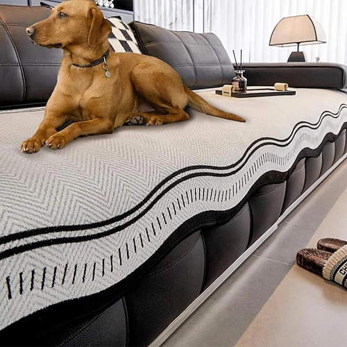 rutschfester Sofabezug Fischgrätenmuster Chenille Couchbezug mit gewellten Kanten Haustierfreundlich