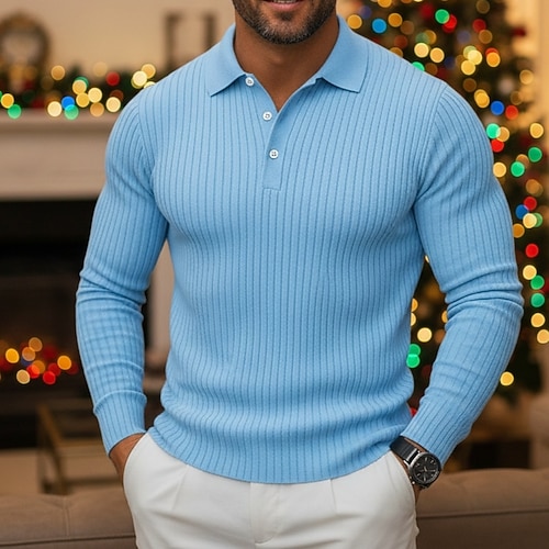 Per uomo Top a Maglia a Coste Polo da Golf Streetwear Casuale Bavero Manica Lunga Essenziale Moderno Semplice Bottoni Primavera Autunno Tutte le stagioni Vestibilità aderente Bianco Blu marino Blu