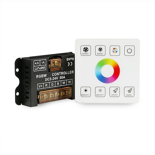 LED-Lichtleisten-Dimmer mit 2,4-GHz-RF-Funkfernbedienung, dimmbarer Wanddimmer, geeignet für einfarbige, zweifarbige RGB-, RGBW- und RGBCCT-LED-Streifen, DC 5–24 V, 10–50 A, Einkanal-Dimmregler