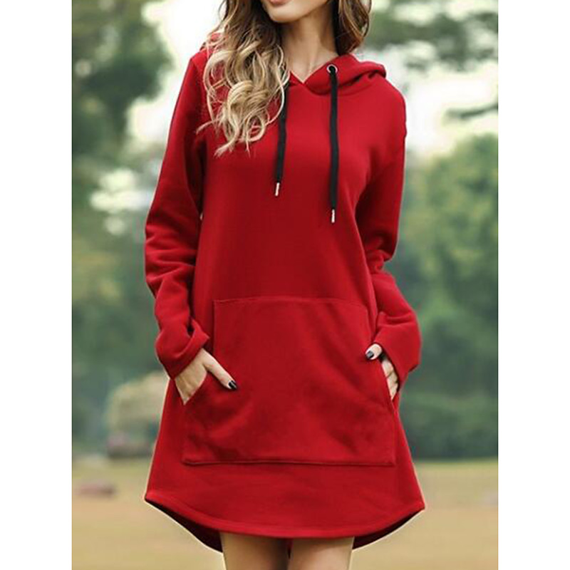 Women's Mini Dress Hoodie Dress Fashion Modern Outdoor Holiday Going out Regular Fit Plain Long Sleeve Hooded Black Red Green Light Grey Spring Fall