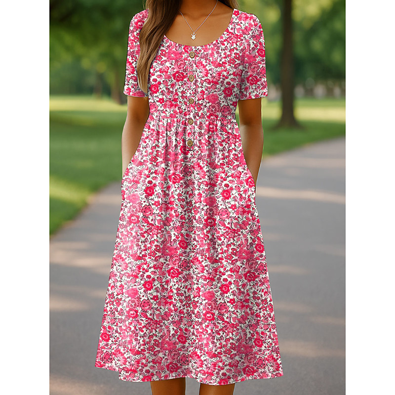 Women's Midi Dress Casual Dress Print Dress Fashion Modern Daily Beach Weekend Regular Fit Floral 3/4 Length Sleeve Crew Neck Red Blue Purple Fuchsia Summer Spring Fall Autumn