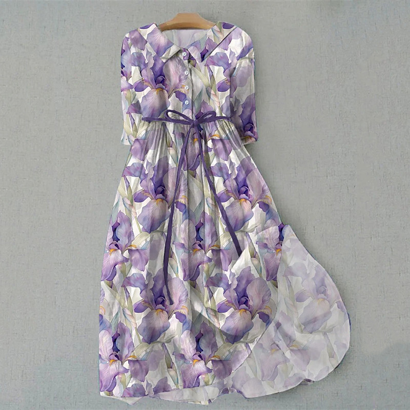 Women's Midi Dress Shirt Dress Casual Dress Fashion Modern Daily Beach Weekend Regular Fit Flower Half Sleeve Shirt Collar White Purple Gray Summer Spring
