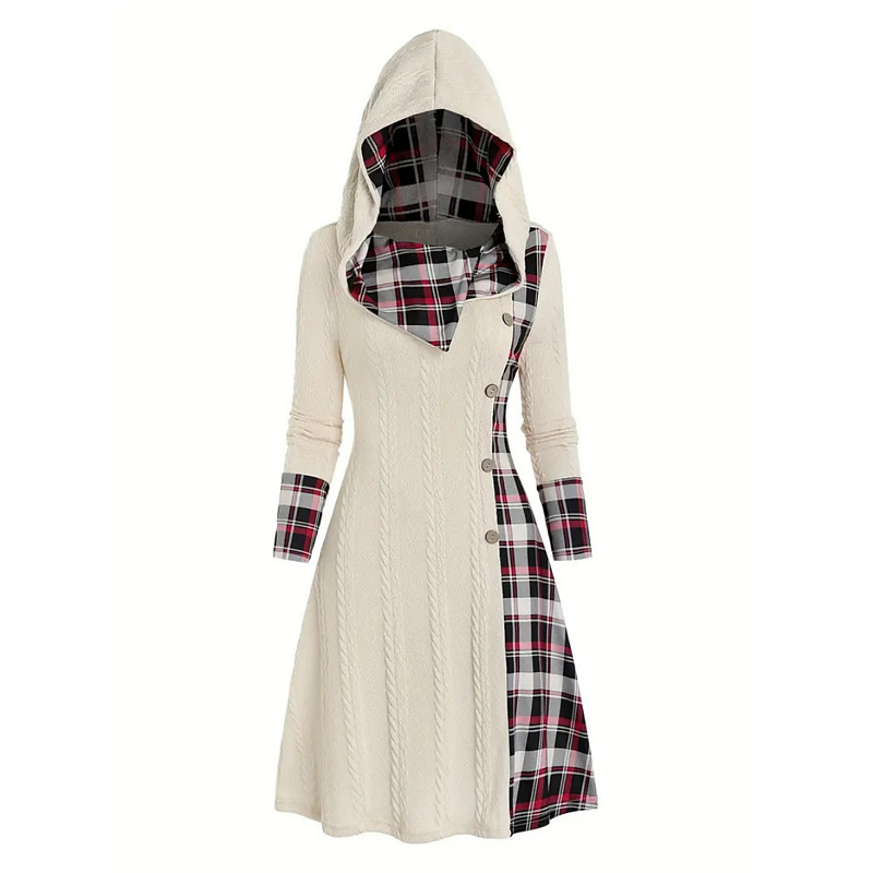 Christmas Women's Midi Dress A Line Dress Casual Daily Regular Fit Plaid Long Sleeve Hooded Black Wine Army Green Apricot Spring Fall Winter