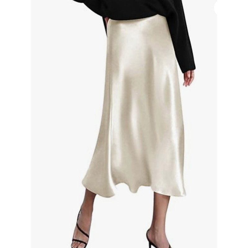 Women's Skirt A Line Elegant Fashion Casual Midi High Waist Skirts Plain Inelastic Street Daily Blue Wine Black White Spring Satin Polyester