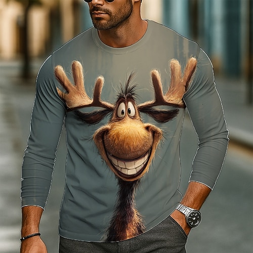 Herren Jeder 3D Zeichentrick Lustig T Shirt Langarm T-Shirt 3D-Druck Rundhalsausschnitt Hemd Mode Basic Straße Lässig Täglich Königliches Blau Blau Braun Sommer Frühling Bekleidung S M L XL XXL XXXL