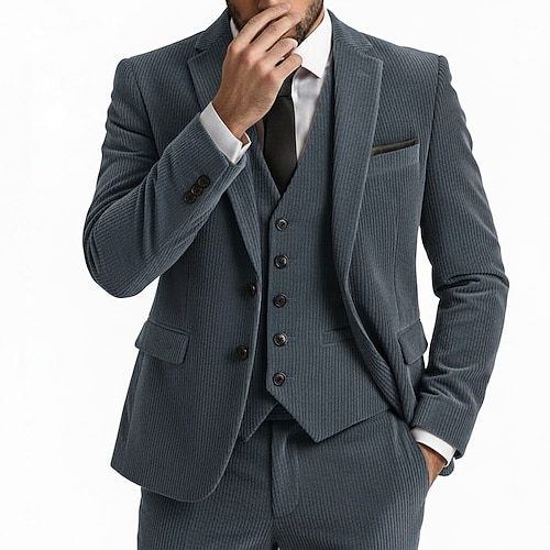 Herren Geschäft Lässig Samtanzug Steigendes Revers Schwarz Burgunderrot Mode Täglich Einfarbig Figurbetonter Schnitt 3-teilig Doppeltknopfjacke mit sechs Knöpfen