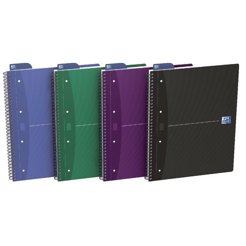 OXFORD Office Essentials Notizbuch DIN A4+ Kariert Spiralbindung Pappe Farbig sortiert Perforiert 180 Seiten Pack 5