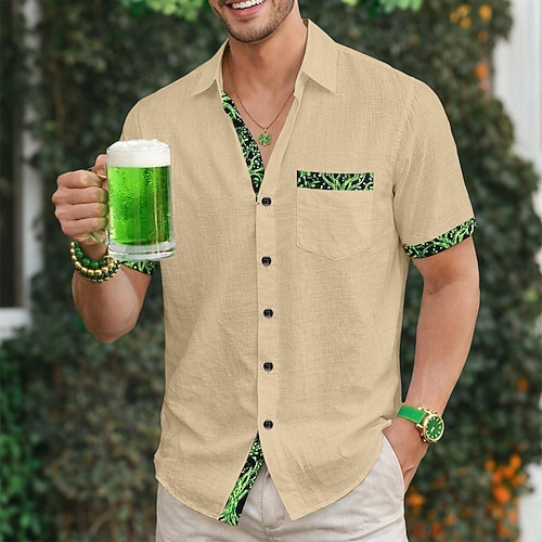 camicia da uomo, camicia di lino, camicia estiva per il giorno di San Patrizio, abbigliamento da spiaggia, camicia con bottoni, tinta unita, casual, spiaggia, blu, nero, bianco, rosa, manica corta,