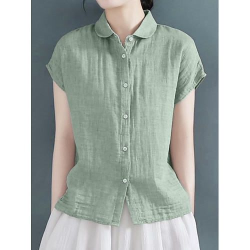 Camicie in Lino Falso per Donna con Bottoni di Colore Solido Stile alla Moda di Base Casual Maniche Corte Colletto Camicia Top Regolari Giornalieri Nero Bianco Rosa Verde Azzurro Chiaro Estate