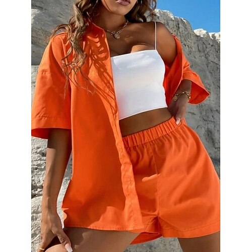 Per donna Set da due pezzi Camicia di cotone Set di Pantaloncini Manica Corta Colletto a Camicia Semplice Moda Streetwear Casuale Quotidiano All'aperto Nero Bianco Giallo Estate Vestibilità regolare