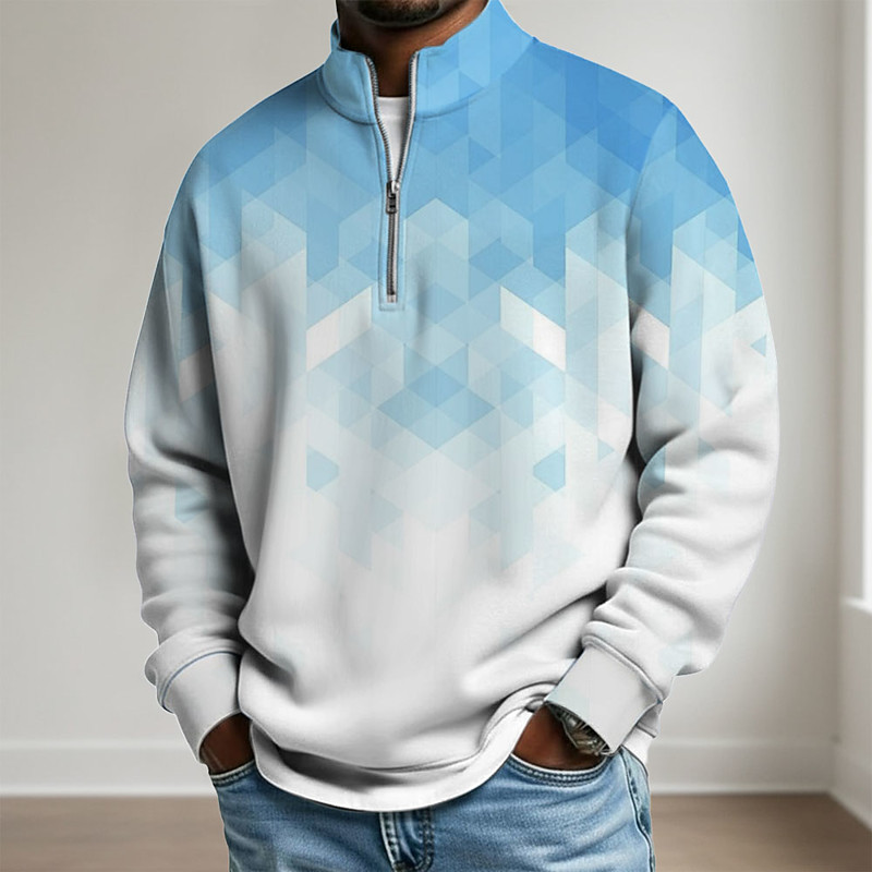 Men's Geometic Zip Polo Shirts Long Sleeve Polo Shirts Grandad Collar Casual School Athleisure Holiday Daily Wear 3D Print Quarter Zip Polo Spring Fall Blue Red Purple