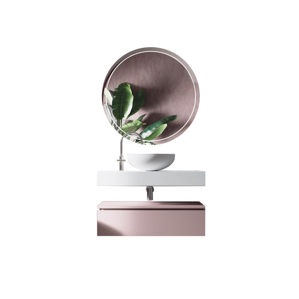 Mobile bagno 4 pezzi in melaminico bianco/rosa
