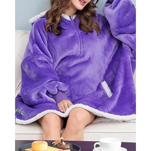 Per donna Pigiama Tutina Flanella Moda Essenziale Colore Puro Cerniera Pantalone Casa Quotidiano Da letto Manica Lunga Felpa con Cappuccio Nero Bianco Rosa Blu Grigio chiaro Inverno Vestibilit