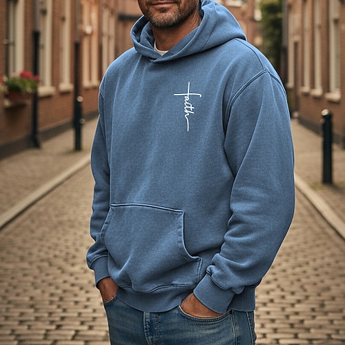 Per uomo Felpa con cappuccio Felpa con cappuccio invecchiata Blu Giallo Rosa Rosso Cammello Con Cappuccio Lettera Fede Coulisse Tasca Tasca Frontale Quotidiano Sport Outdoor Ferie Cotone Streetwear