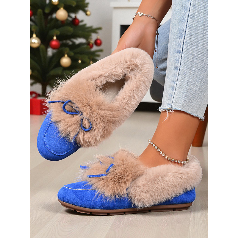 Women's Loafers Classic Loafers Soft Shoes Comfort Shoes Christmas Daily Bowknot Flat Heel Round Toe Casual Comfort Faux Fur Faux Suede Loafer Orange red Almond Black